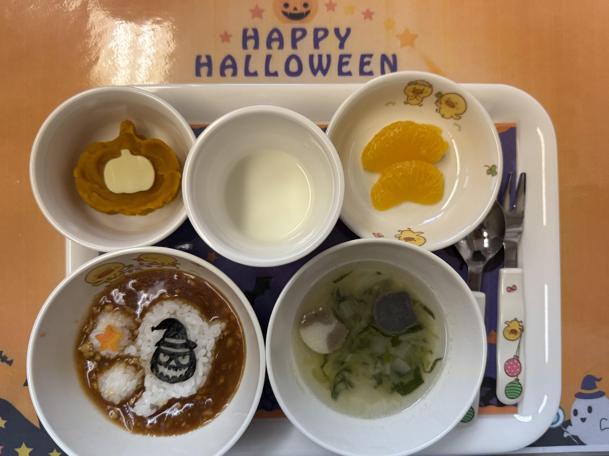 おばけやかぼちゃのかたちにデコレーションされた楽しくて美味しい給食です。