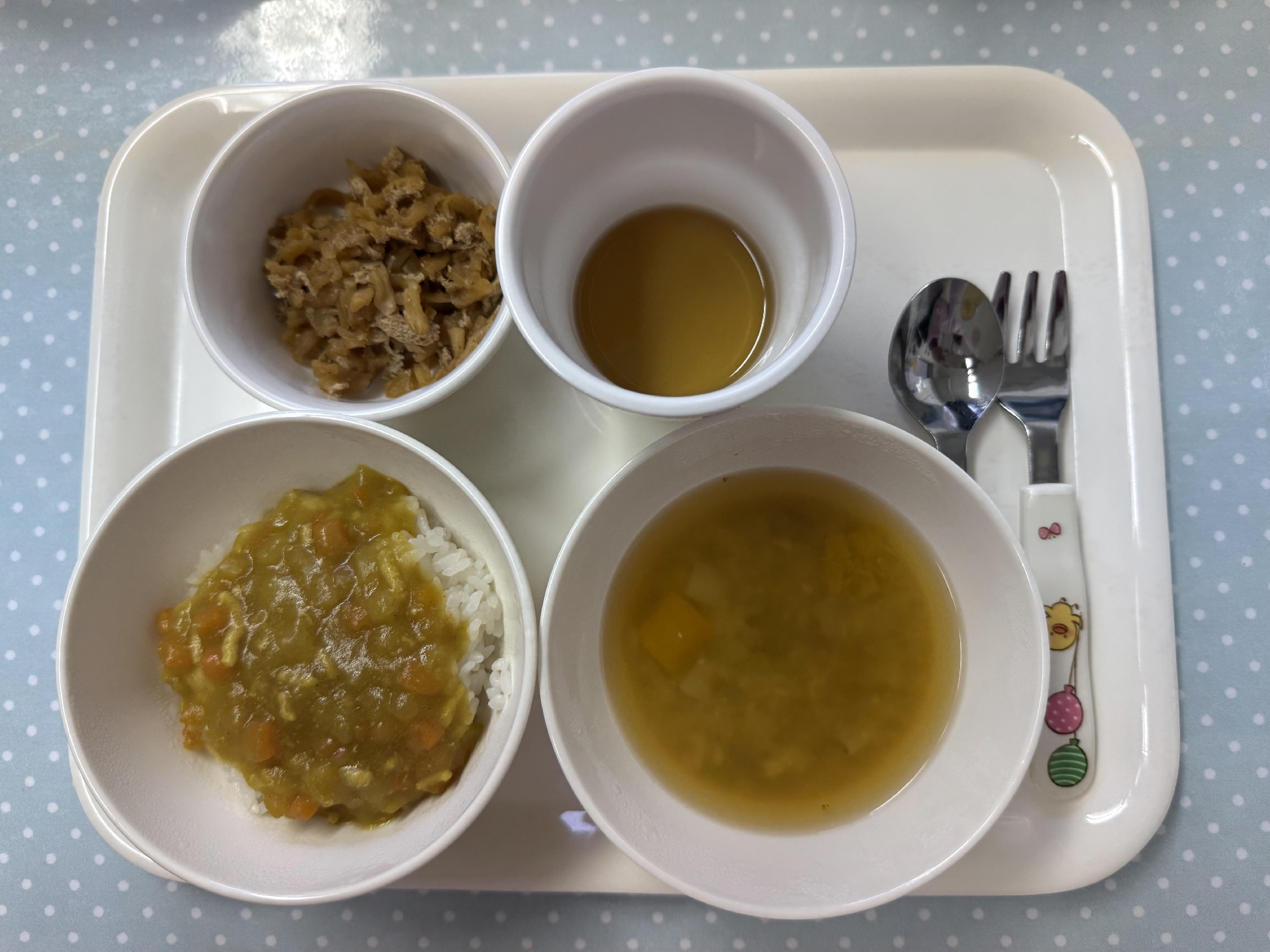 ひき肉カレーはじゃがいものとろみがあって口当たりがいいです。いただきます。