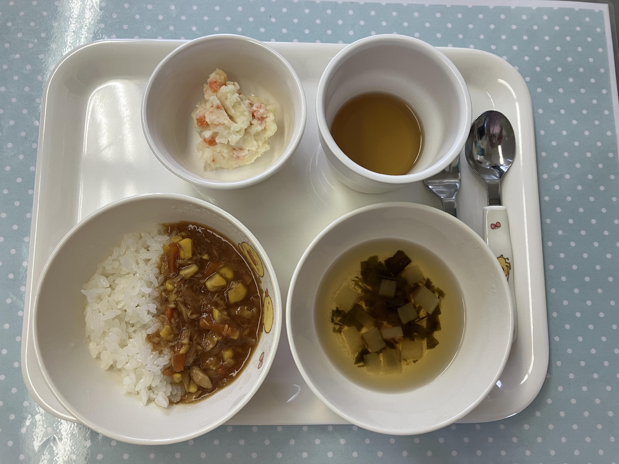 ツナととうもろこしが入ったハヤシライスはめずらしかったようで興味津々の子どもたち。いただきます。